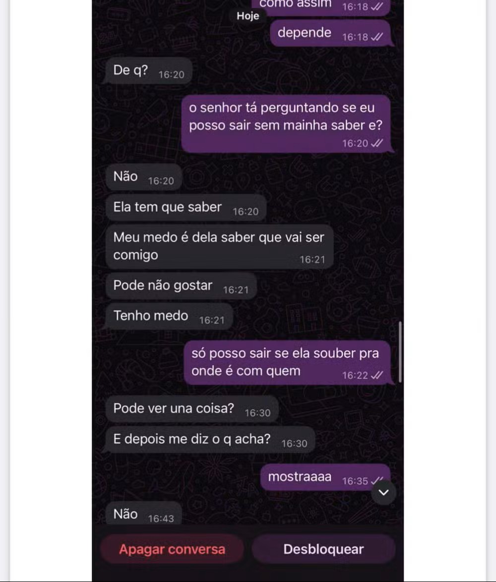 Capturas de tela do inquérito policial, acessadas pelo g1, mostram o teor das mensagens enviadas pelo suspeito à filha. A conversa revela que o homem pedia para se encontrar com a adolescente às escondidas da mãe.