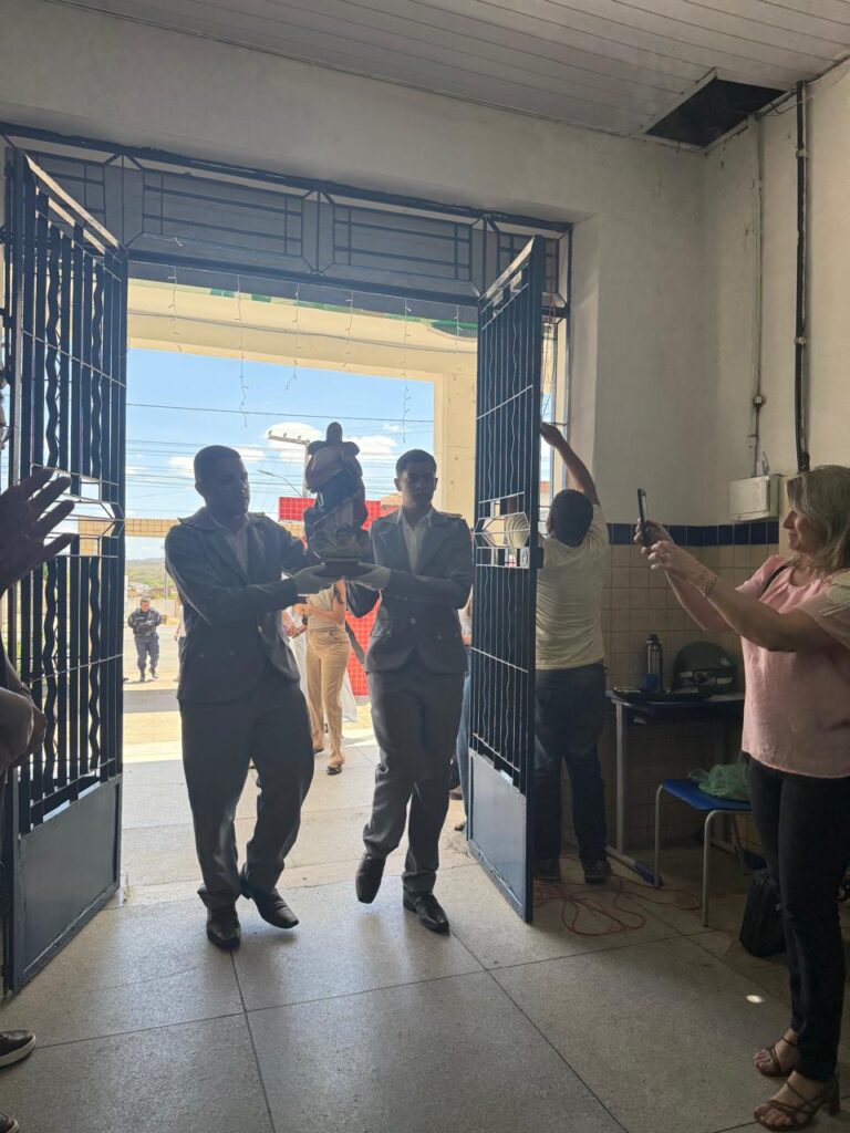 Neste dia 2 de dezembro, já pela manhã, a Escola de Referência em Ensino Médio Olavo Bilac recebeu a visita dos padres Gilvan e Lenilton que levaram a padroeira de Sertânia, a Nossa Senhora Imaculada Conceição e no auditório daquela unidade escolar oraram junto com a equipe gestora, com professores e alunos.