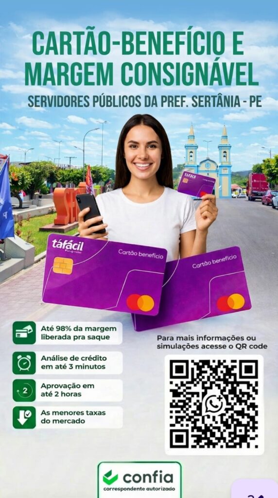 A gestão municipal de Sertânia anunciou uma importante novidade voltada aos servidores públicos: a implantação do cartão-benefício aliado à margem consignável, medida que promete ampliar o acesso ao crédito com mais agilidade e condições facilitadas.