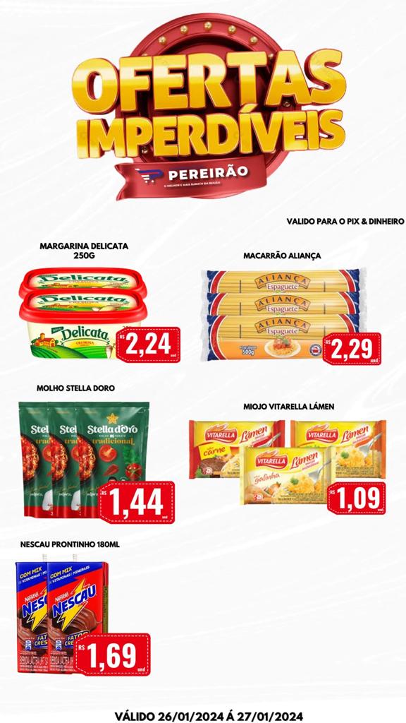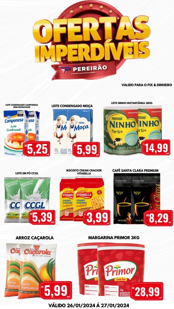 SUPERMERCADO PEREIRÃO NESTE FINAL DE SEMANA COM GRANDES PROMOÇÕES. VEJA OS PREÇOS SUPERMERCADO PEREIRÃO COM GRANDE PROMOÇÕES DE QUARTA ATÉ O SABÁDO, VÉSPERA DO DIA DAS MÃES Postado Por: redação tribuna do moxotó 26 de janeiro de 2024 O Supermercado Pereirão neste final de mês está com grandes promoções veja ai: Comentários do Facebook